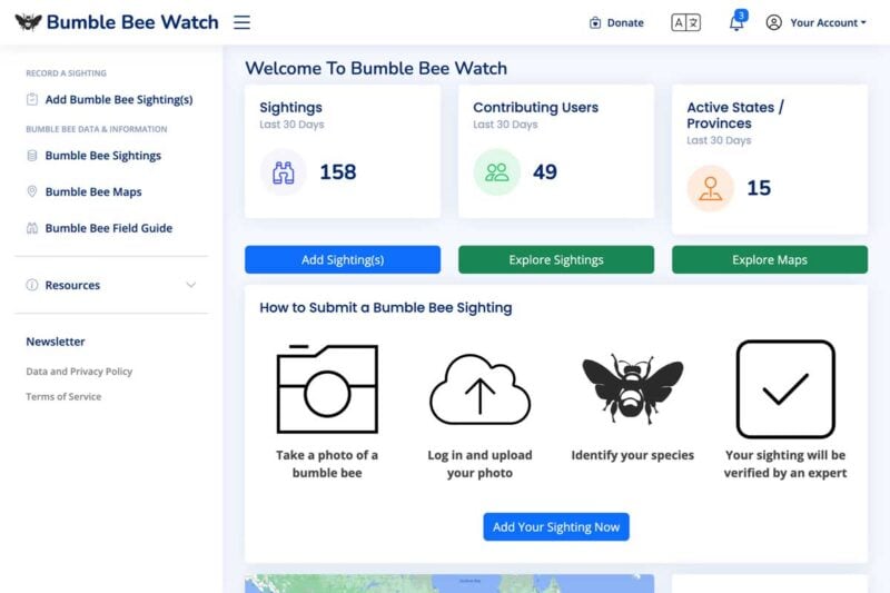 While we inherited a data model, the application itself was built from the ground up to support submission, review, browsing, and mapping of bumblebee sightings. It’s a complex, custom-built citizen science framework designed specifically for Bumble Bee Watch’s needs.